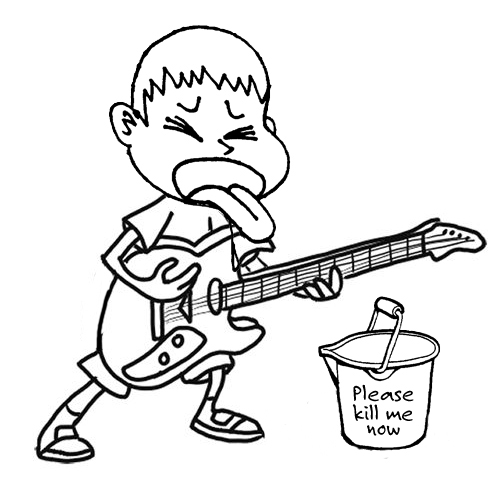 I started playing guitar in one of the bands at church. It’s been going well, despite the fact I’ve almost thrown up from nerves on several occasions. You see, “play” is kind of a strong word to describe what I do, since I don’t really “grasp” musical theory. I’m a little short on what the experts would call “talent.” So imagine my delight when I show up to play in a band for THE FIRST TIME EVER and the drummer doesn’t show. Wondering how this affects me? Glad you asked. You see, the plan was for me to be the second guitar (read: stand in the back, hit some chords, act like I’m doing something really important). Now, with the drummer M.I.A., the singer/really good guitar player had to lead from the drums, Don Henley-style. Guess who that left flying solo on guitar? That’s right, THIS GUY!! And this happened in church. Where I couldn’t curse or throw things. Fantastic.