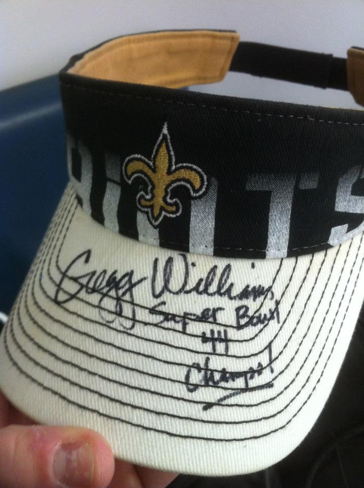 Anyway, he was on the same flight to Dallas as my family and me. I happened to finish checking in first and was standing by the luggage drop-off area, waiting for the rest of my party to catch up. Williams finished checking in and started to head toward the terminal. As he approached me, I knew I had three options: A) Ignore him, B) Tackle him, or C) Take the high road and thank him for his service. Now, despite the fact that it was very early in the morning, my conscience seemed to be awake, so I went with Option C. Plus, in my mind, helping us win a Super Bowl far outweighed the tragic decision to not double cover Vernon Davis. So, as he passed, I simply said, “Thanks, Gregg.” He paused, thanked me, and said it meant a lot. He was very gracious and came across as genuine. It was a cool moment. He even signed a visor for my brother-in-law, the eBay value of which has since plummeted.