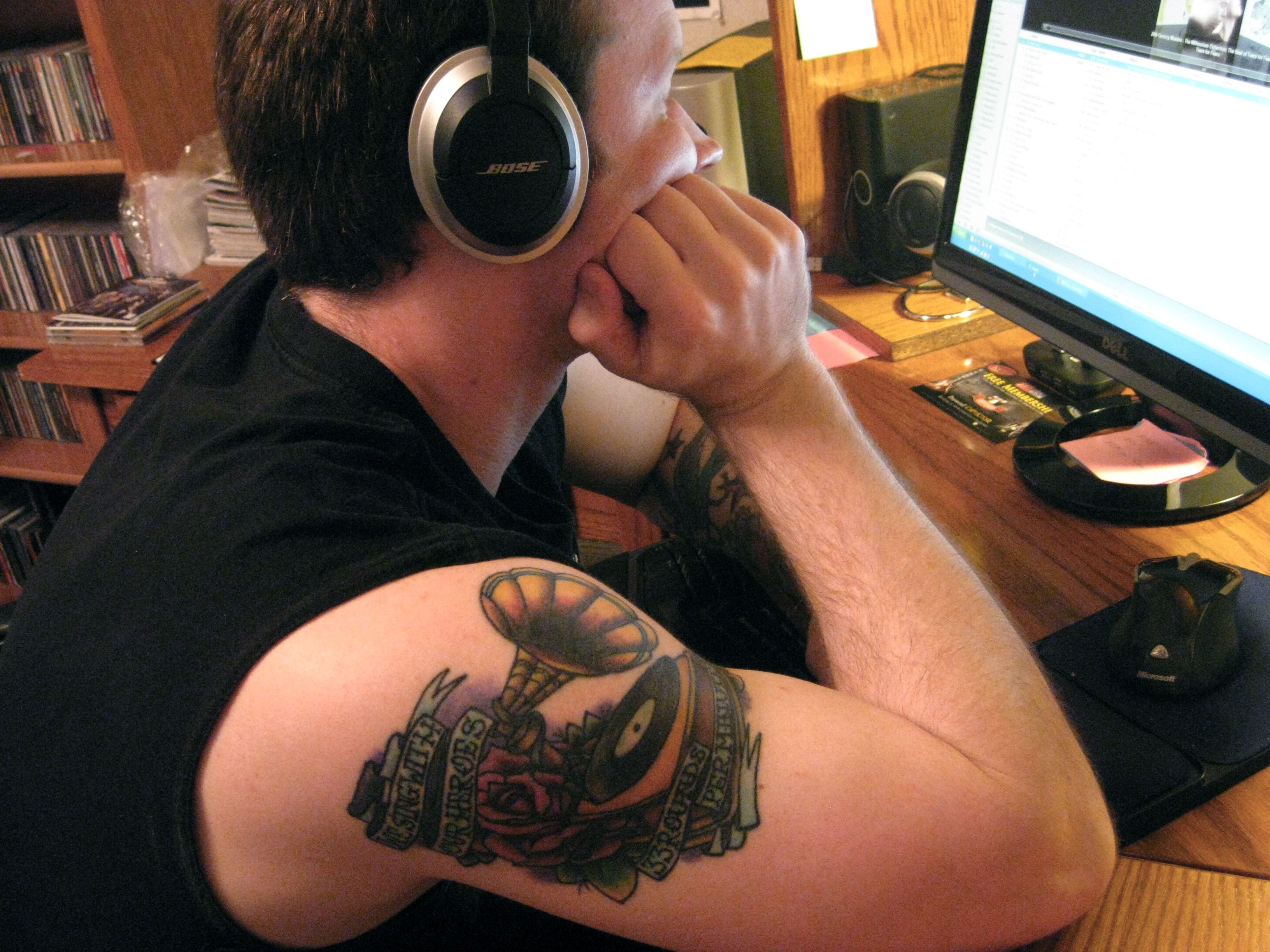 This masterpiece of blinding awesomeness, I got for my 31st birthday. It’s not an original idea by any stretch of the imagination. In fact, I’ve seen a few others very similar to it sported by fellow fans of a particular band from New Jersey. I even considered not getting it for that very reason. Because, as much as I love them (the band; I don’t really know the fans), I didn’t want it to come off as just a cookie cutter homage to them because I was shooting for something a little bigger. I wanted something to mark my love of music in general, not one act in particular.